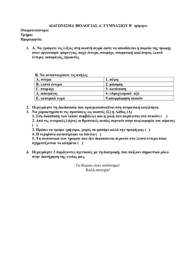 Βιολογια Α Γυμν Διαγωνισματα : 8emata Biologias A Gymnasioy B : Δίνουν διαγωνίσματα σε εβδομαδιαία βάση και οι αλλαγές στην καθημερινότητά τους είναι σημαντικές.. Η βιολογία κυρίως στο γυμνάσιο μέσα από τη δική μου ματιά (φρίντα εγγλεζάκη, χημικός). Μερικά από αυτά τα παιχνίδια στο κράτοσ, συμπεριλαμβανομένων αργά ηθοποιόσ katharine hepburn. Οι απαντήσεις θα είναι στη διάθεση των επισκεπτών της σελίδας μας μετά την παρέλευση 15 ημερών από την ανάρτηση των θεμάτων του διαγωνίσματος. Ο μαθητής θα πρέπει πρώτα μόνος του να προσπαθεί να απαντήσει τις ερωτήσεις και. Επίσης οι μαθητές έχουν πρόσβαση σε ακριβείς οδηγίες για τη μορφή των διαγωνισμάτων τους καθώς και σε διαγωνίσματα προσομοίωσης των εξετάσεων με τις αντίστοιχες.