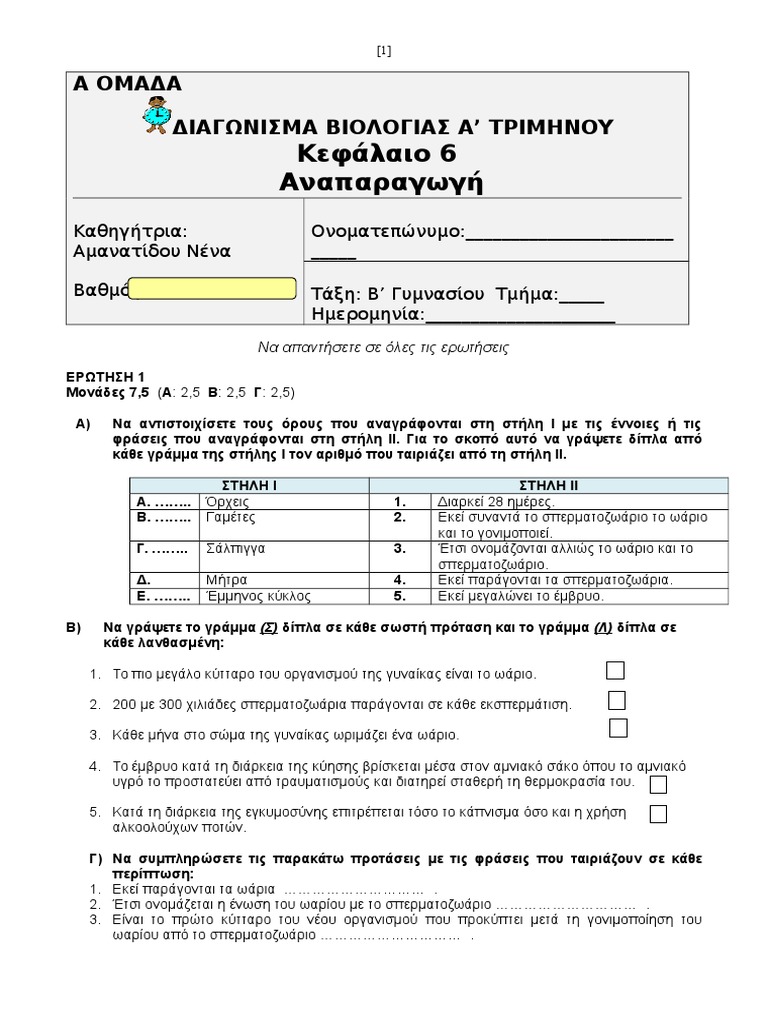 Διαγωνισμα βιολογιασ α' γυμνασιου σχολείο: Κειμενα φυσικη ιστορια αρχαια οδυσσεια βιολογια βιολογια τ.ε. Η οργάνωση της ζωής του σχολικού βιβλίου. Βιολογια α γυμν αναπαραγωγικο συστημα. Μην αφήνετε το χρόνο σας να πάει χαμένος!!!!